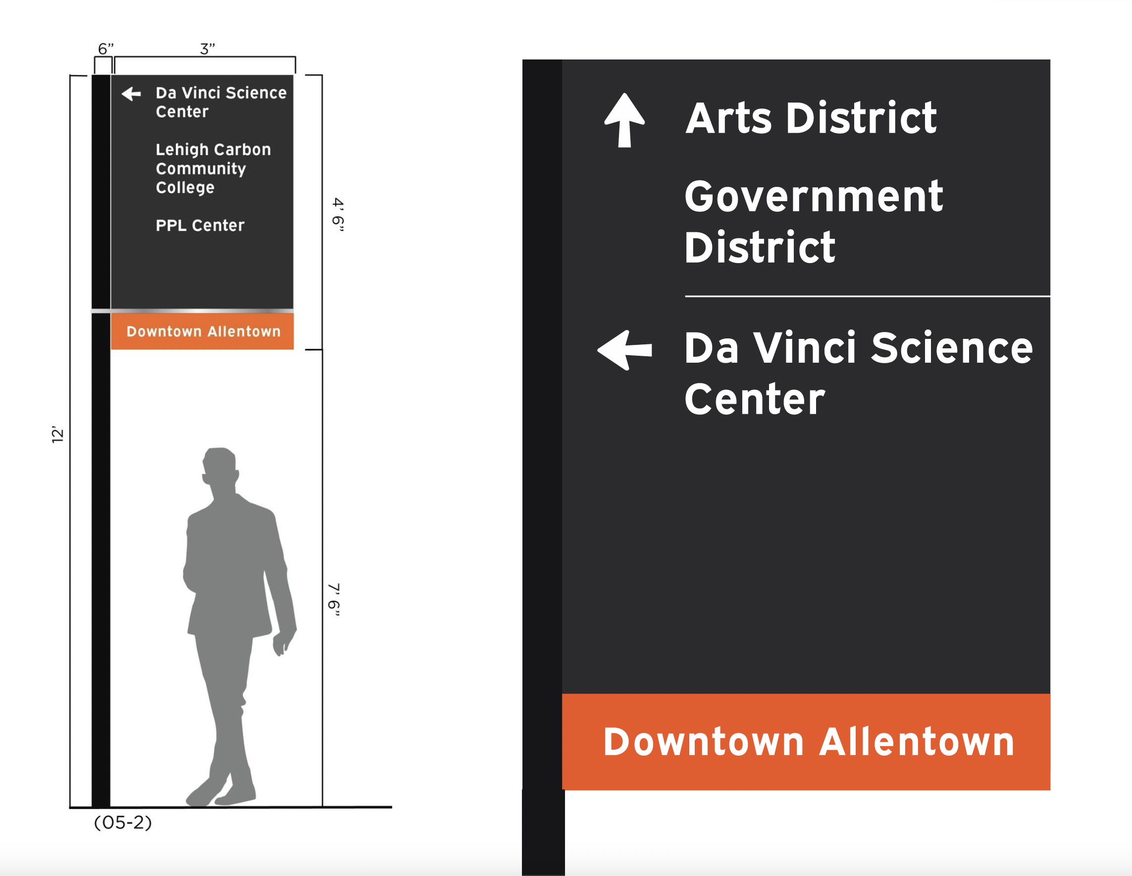 In partnership with the City of Allentown and the support of the Allentown Neighborhood Improvement Zone (ANIZDA), City Center Group developed citywide directional signage for the downtown area to support the growing number of visitors. The new wayfinding system includes vehicular signage, pedestrian signage, and pedestrian kiosks featuring a downtown map that highlights key locations on the front and a display frame on the back for seasonally swapped posters. The overall design is consistent, clean, and easy to read, creating a clear and welcoming experience for everyone visiting downtown.