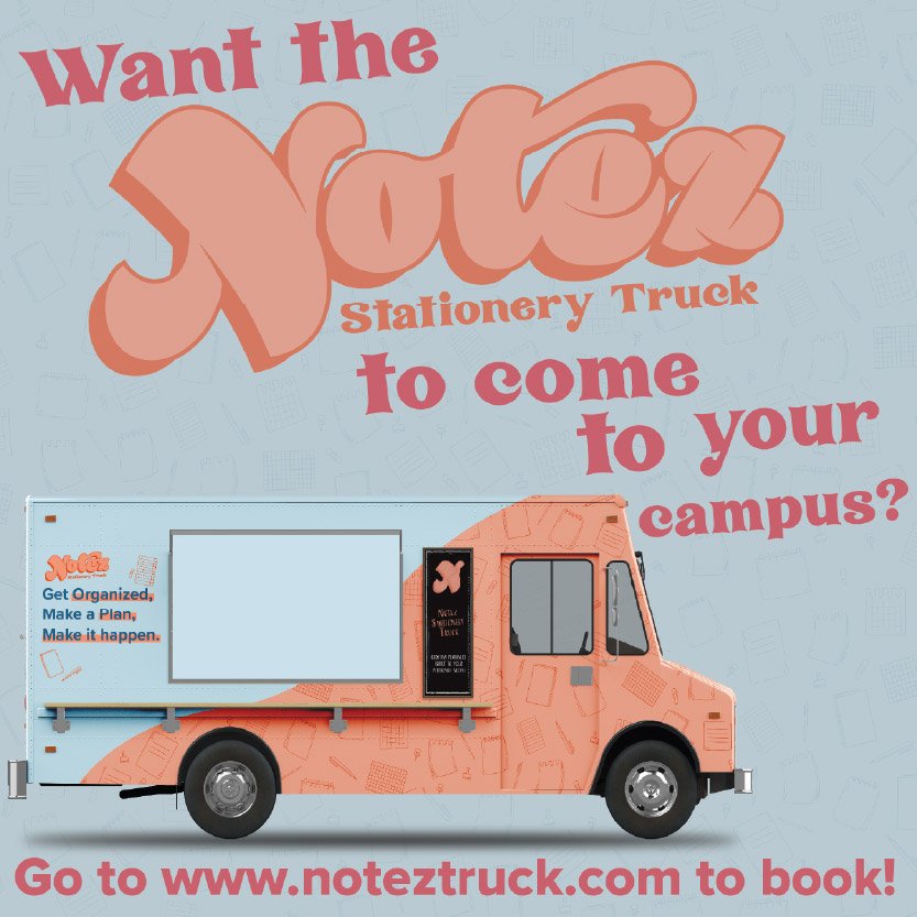 Notez is a mobile stationery experience designed to help busy college students stay organized. Traveling across campuses in the Northeast, the truck offers fully customizable planners tailored to each student’s schedule and planning style.